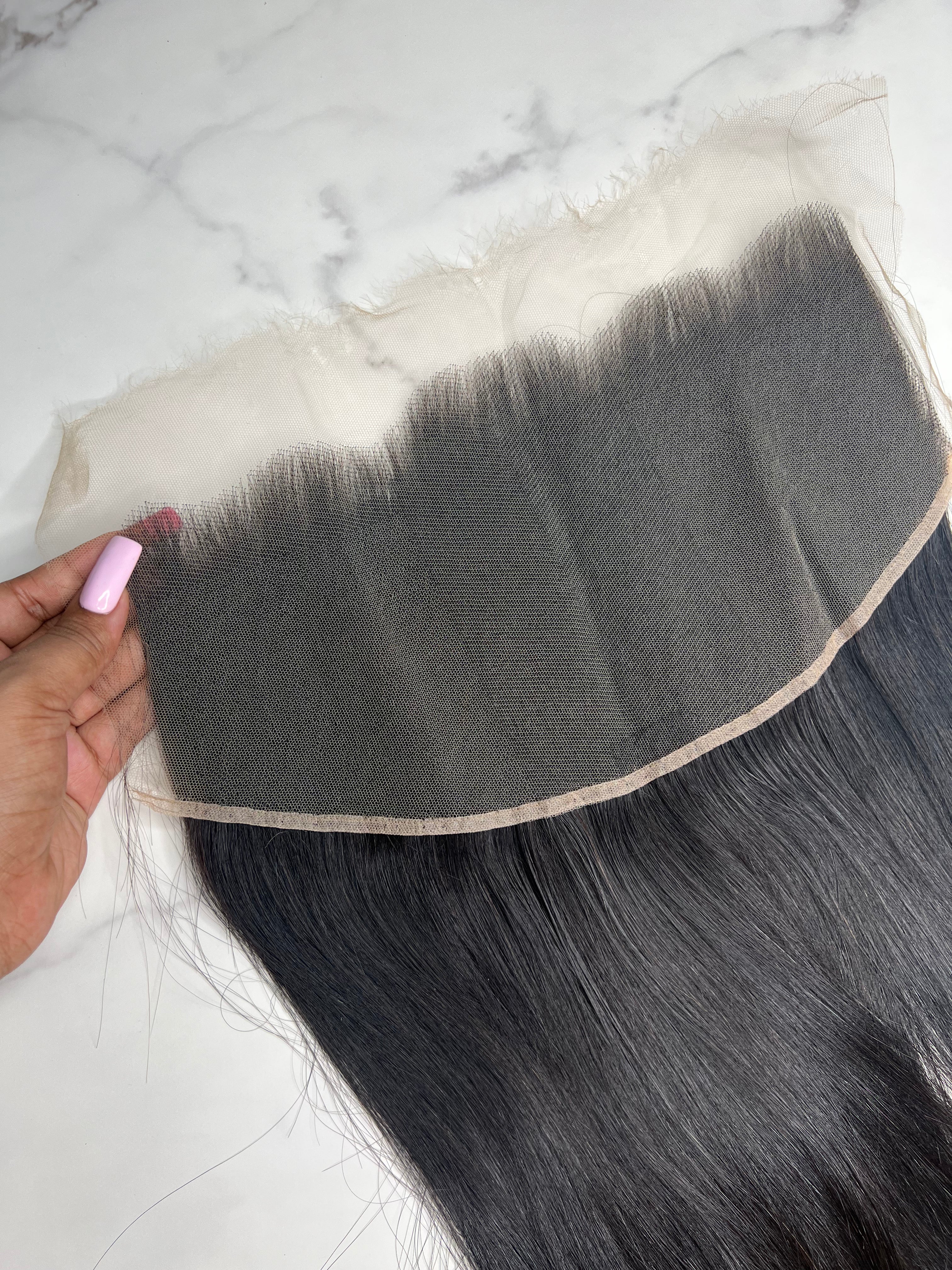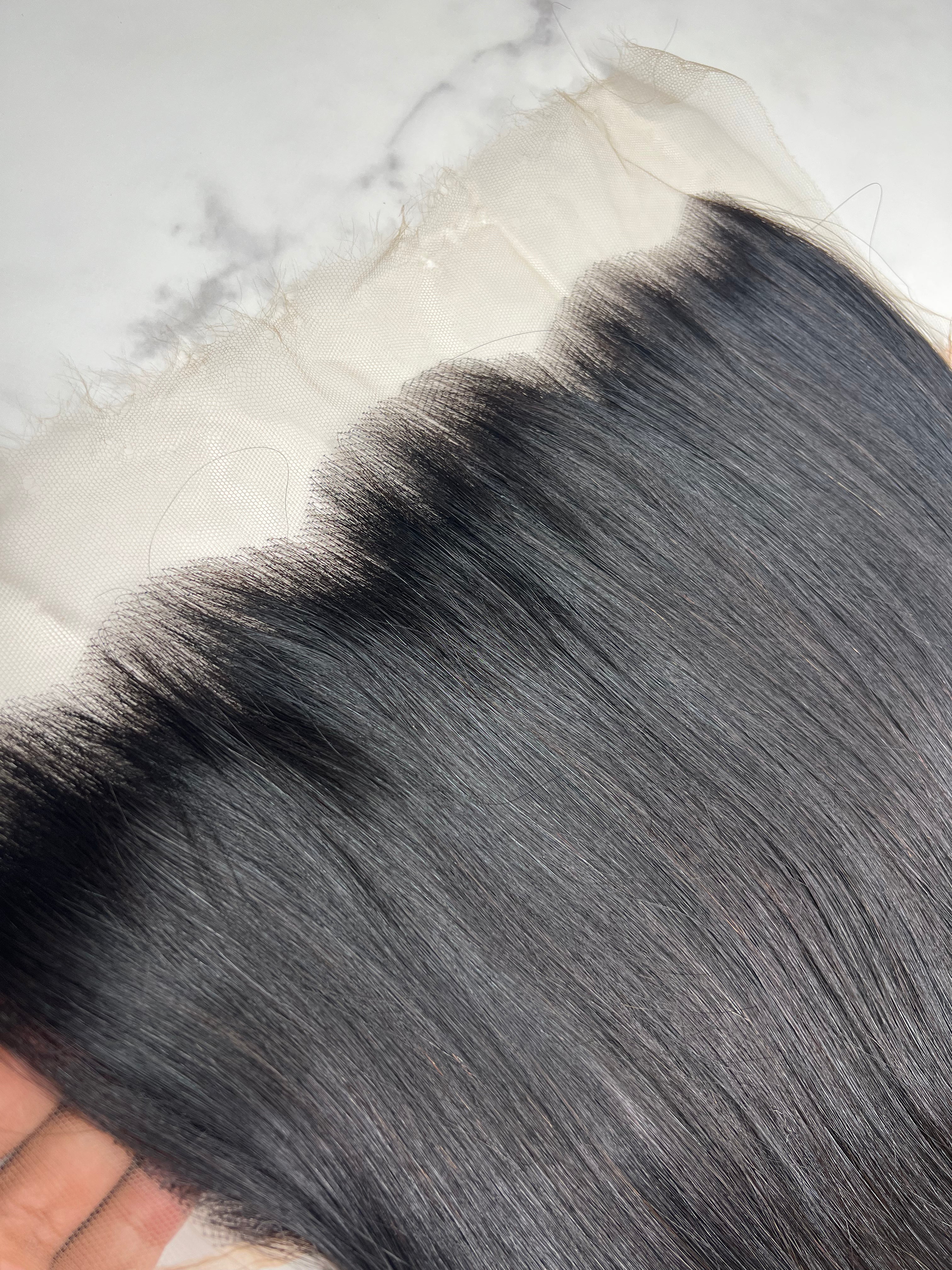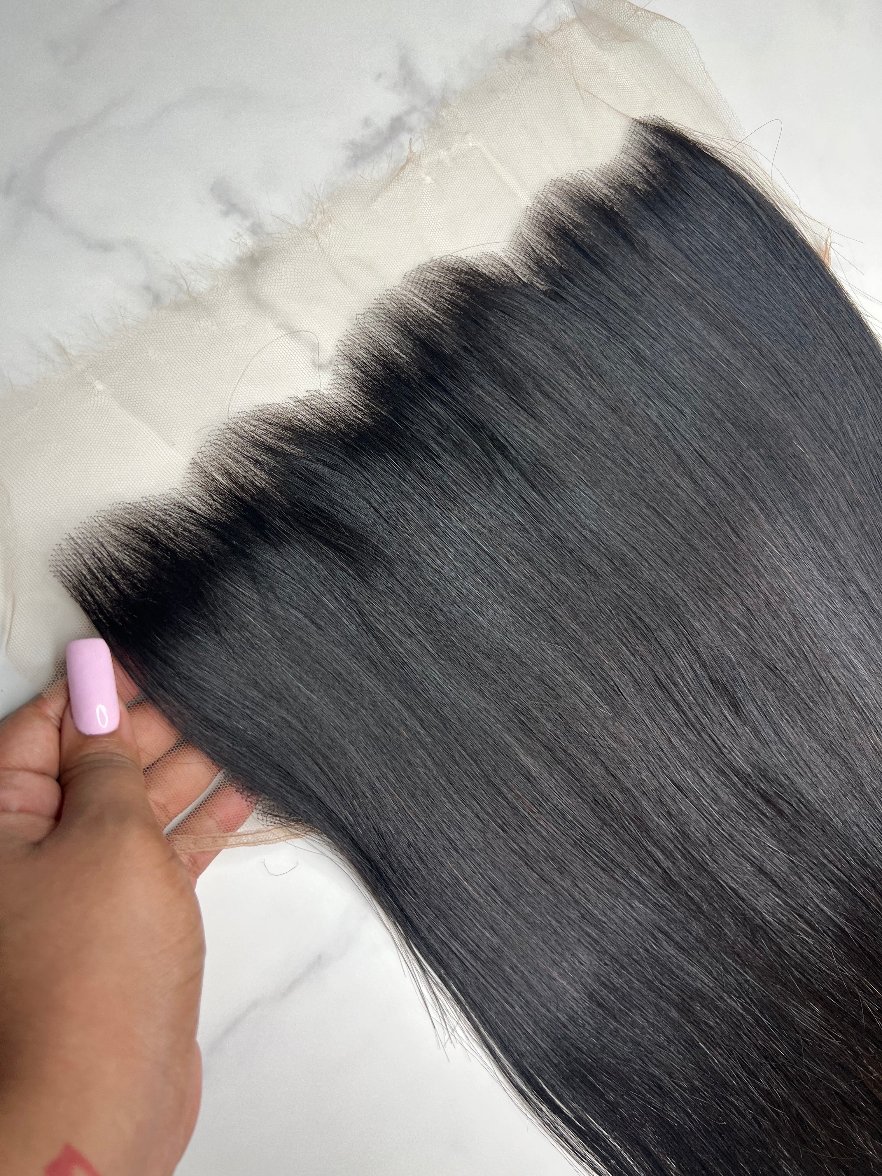 The hair itself carries a silky, consistent flow that complements your bundles perfectly, holding its form through heat styling and repeated wear. Designed for clients who demand precision and a flawless melt, this frontal brings together craftsmanship and comfort in one timeless piece.